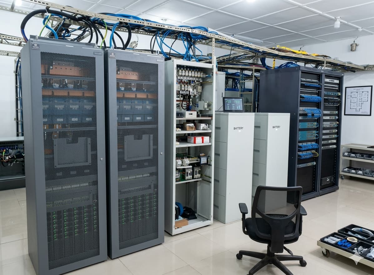 De 10 KVA à plusieurs MVA — UPS, groupes, batteries, refroidissement, armoires électriques.